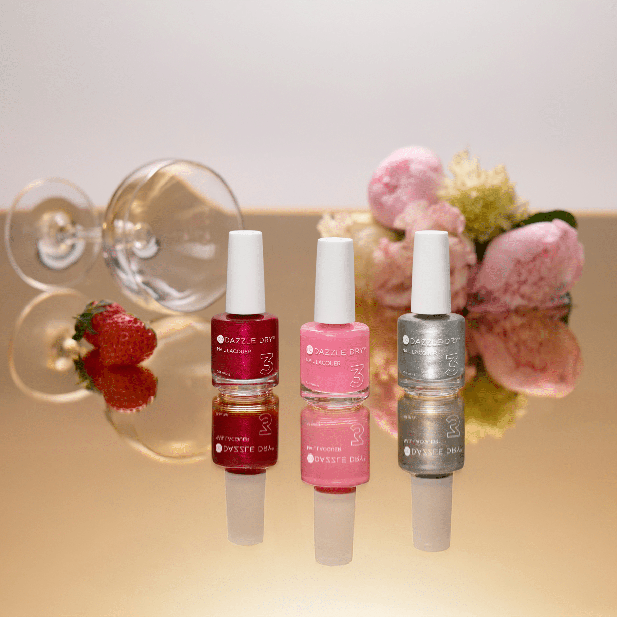 Revive nails with a fortifying Dazzle Dry lacquer refresh. Polish is removed, nails are re-shaped and lightly buffed then finished with Dazzle Dry’s signature four-step nail care application.